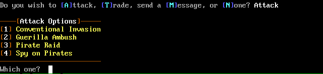 If you pay attention to the events that occur before the status screen, you may notice that various teams of Pirates take some of your military, covert agents, planets, food, or money. You can raid these foes from the attack menu by sending a military and lots of money to capture back some of their goods. Included in the items you capture may be items that they have captured from other empires.