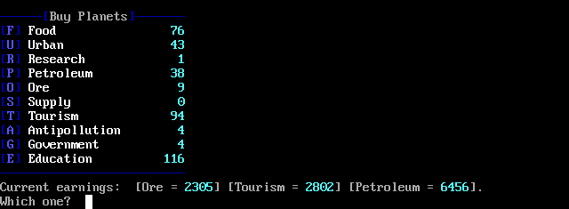 The game will show you what each type of planet produced. It also shows you the amount you made in taxes. For supply planets, it shows the amount of each type of military unit that was added to your forces. Petroleum and anti-pollution planets also report the change in the amount of pollution in your atmosphere.